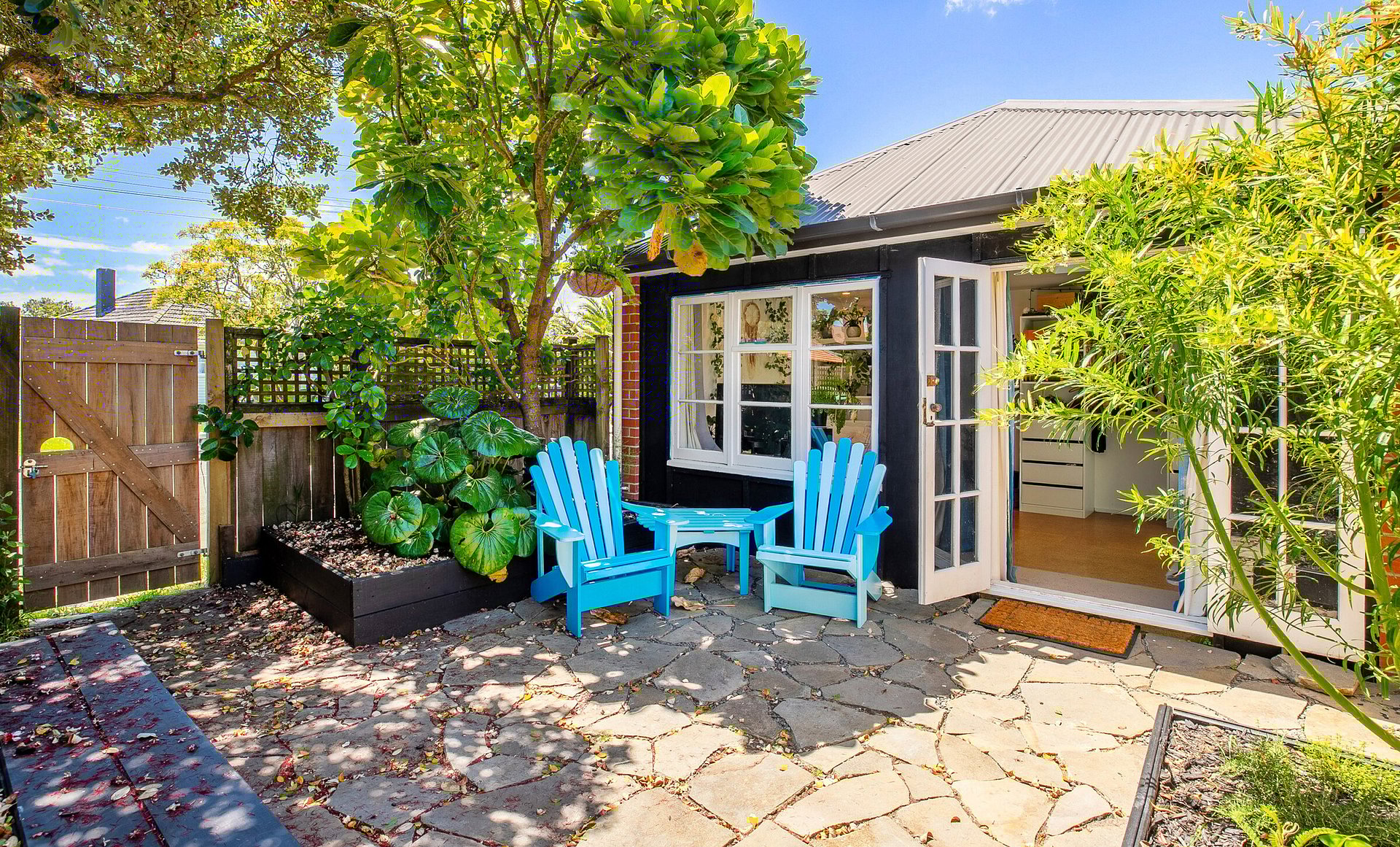 An existing 5m by 5m carport is transformed into a self-contained apartment or tiny home at the front of the main house for the newly independent teen. Complete with a kitchenette and ensuite, the space is compatible with the aesthetic of the existing home just behind the bamboo privacy screen.